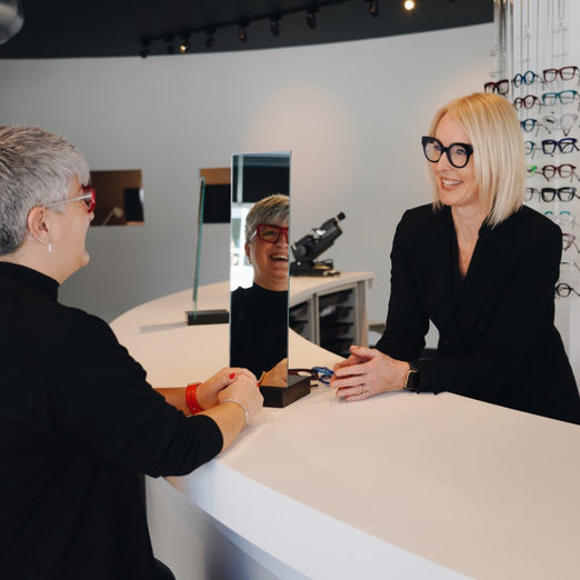 Transition fluide vers des lunettes sur mesure: Vos résultats optiques précis peuvent être élégamment transformés en lunettes faites sur mesure, conçues et ajustées ici même dans notre boutique de Saint-Lambert.